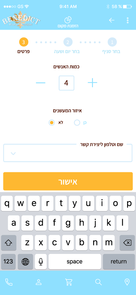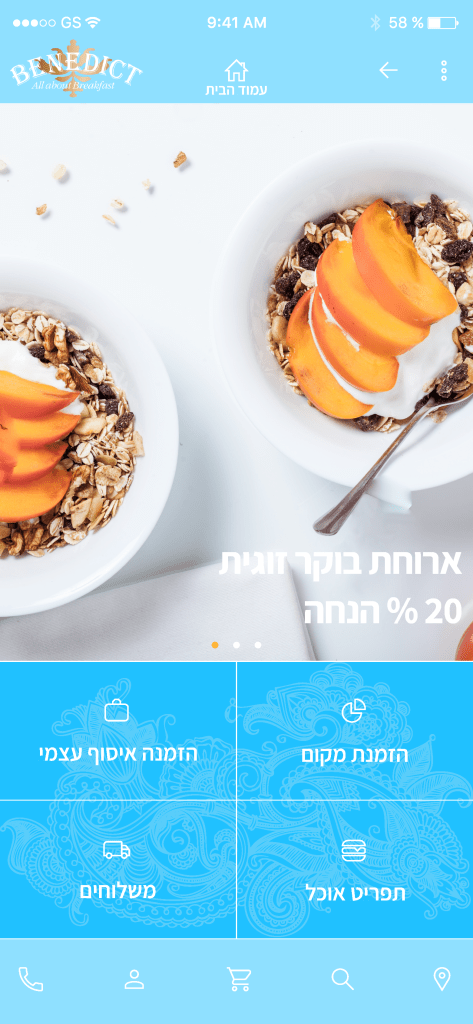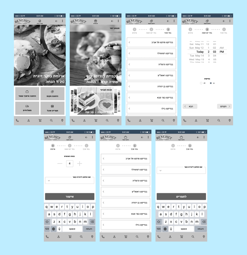 Design of the breakfast restaurant app “Benedict”, which includes stages of UX in Low and High fidelity, and the stages of UI. The process work included building a usage map and user scripts and research of existing apps. The target audience – men, women, families, mostly young working people.