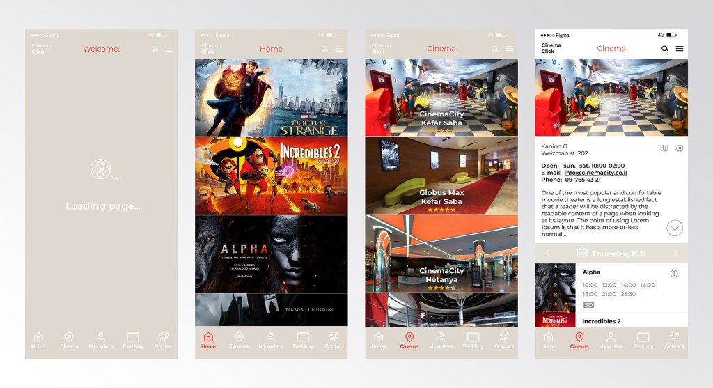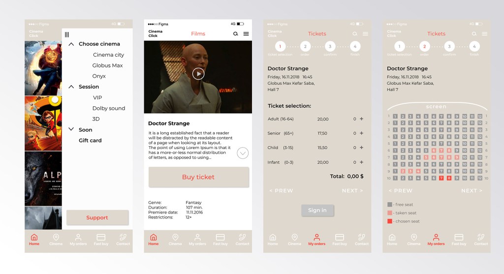 The app was designed for movie theatres network and it allows the buying of movie tickets. The design process included researching the target audience, researching applications of similar services, building a user map and a user scenario and then graphic design.