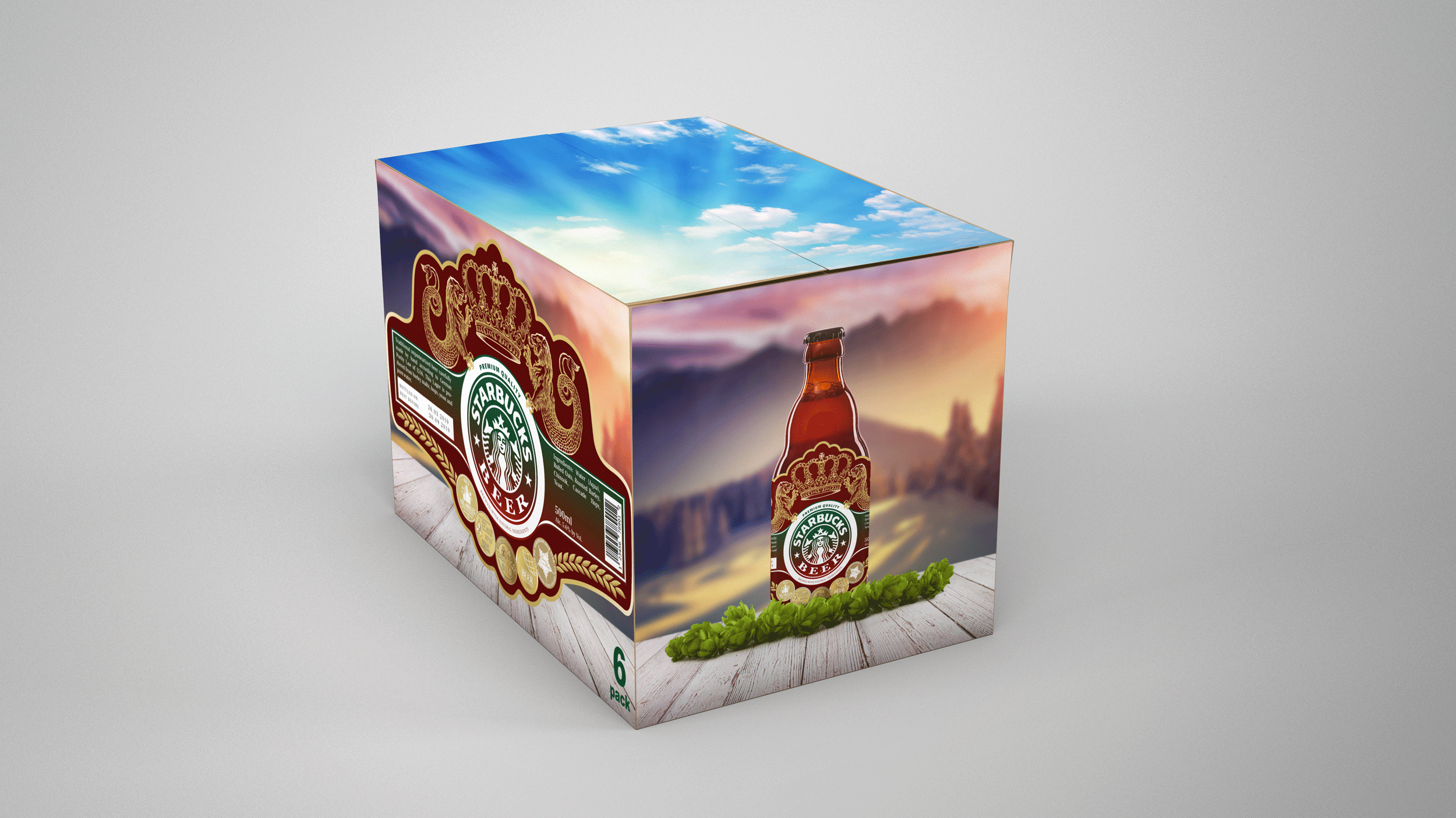 When I’m abroad I really like to enter the coffee chain “Starbucks.” That’s why I chose this company and I decided that I would design the beer bottle of “Starbucks.” At first, I was doing research about the design style of logos for beer, and then I created the logo, then the mockup of the bottle, and finally, the box.
